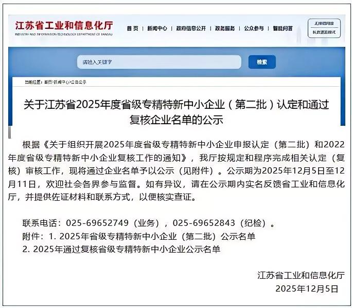 近日,江蘇省工業(yè)和信息化廳發(fā)布了《關(guān)于江蘇省2025年度省級(jí)專精特新中小企業(yè)(第二批)認(rèn)定和通過復(fù)核企業(yè)名單的公示》,申錫機(jī)械集團(tuán)有限公司順利通過復(fù)核,其在技術(shù)創(chuàng)新、市場(chǎng)拓展與產(chǎn)業(yè)突破等方面的綜合實(shí)力再度獲得權(quán)威認(rèn)可。